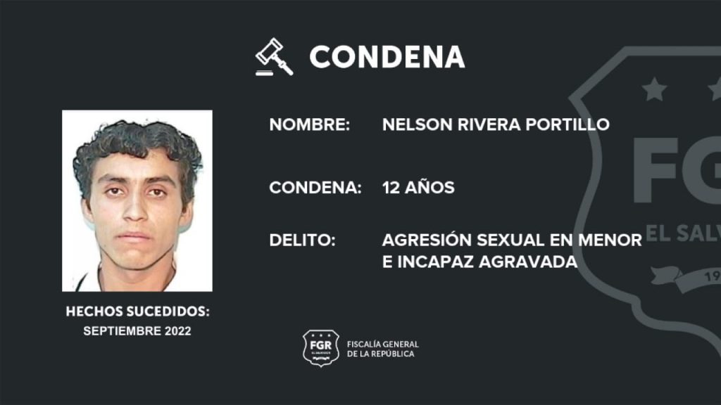 Chalatenango. Nelson Rivera Portillo fue condenado a 12 años de prisión por agredir sexualmente a una menor de edad en La Palma, Chalatenango.