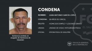 El Juzgado de Sentencia de Usulután admitió que García López cometió el delito de Homicidio Simple y le impuso 15 años de prisión. Además, le sumó otros 3 años de cárcel por Lesiones Graves.