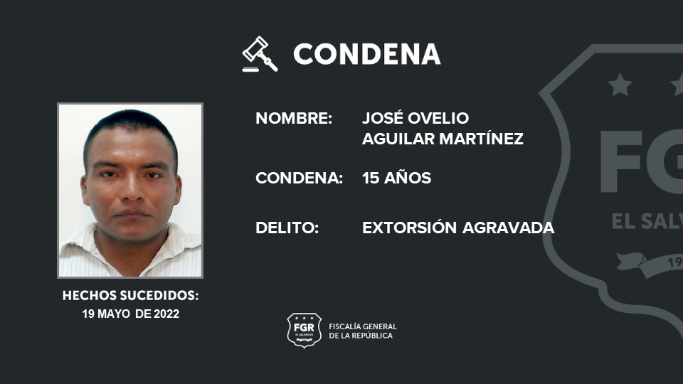 Ahuachapán. José Ovelio Aguilar Martínez fue sentenciado a 15 años de prisión por haberle exigido a su víctima $2,000 dólares, los cuales debía entregar al día siguiente.