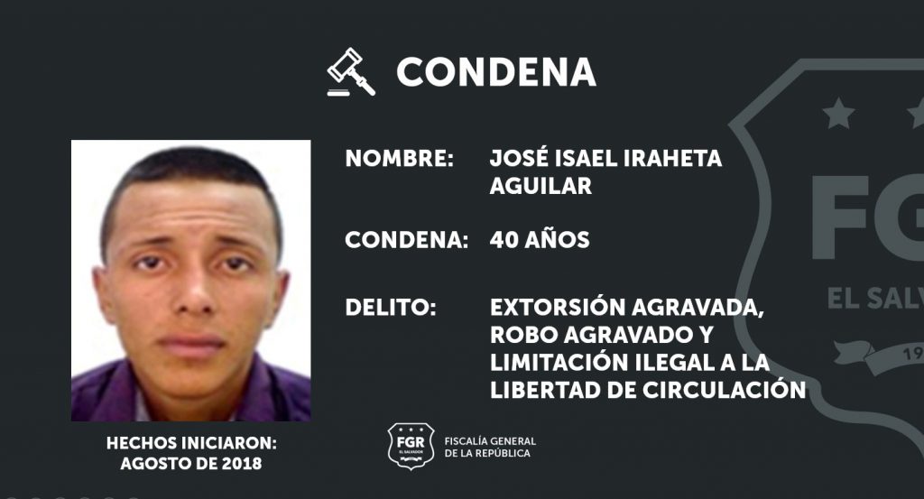 En marzo del año 2020, Iraheta llegó a la vivienda de la víctima y le exigió que abandonara su propio hogar, pues asumían que este interactuaba con miembros de una pandilla contraria. Por este ilícito de Limitación Ilegal a la Libertad de Circulación fue condenado a 8 años de cárcel.