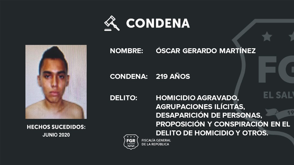 Santa Ana. Los pandilleros Óscar Gerardo Martínez, alias demen boy, y Saúl Elías Ramos, alias elegido, fueron condenados a 219 y 177 años de cárcel, respectivamente, luego de ser declarados culpables de participar en varios homicidios, extorsiones, agrupaciones ilícitas, desaparición de personas, entre otros.