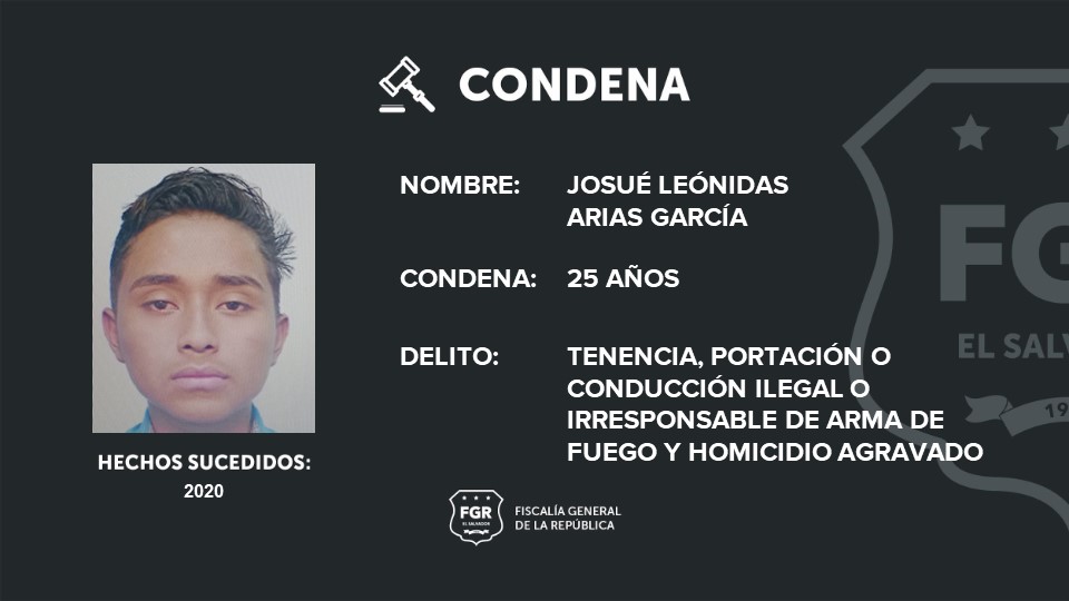 El Tribunal de Sentencia de Ahuachapán condenó a los tres imputados a 22 años de prisión por el delito de homicidio agravado, y a Josué Leónidas Arias García se le sumaron tres años más por el delito de tenencia, portación o conducción ilegal o irresponsable de arma de fuego, haciendo un total de 25 años de prisión.