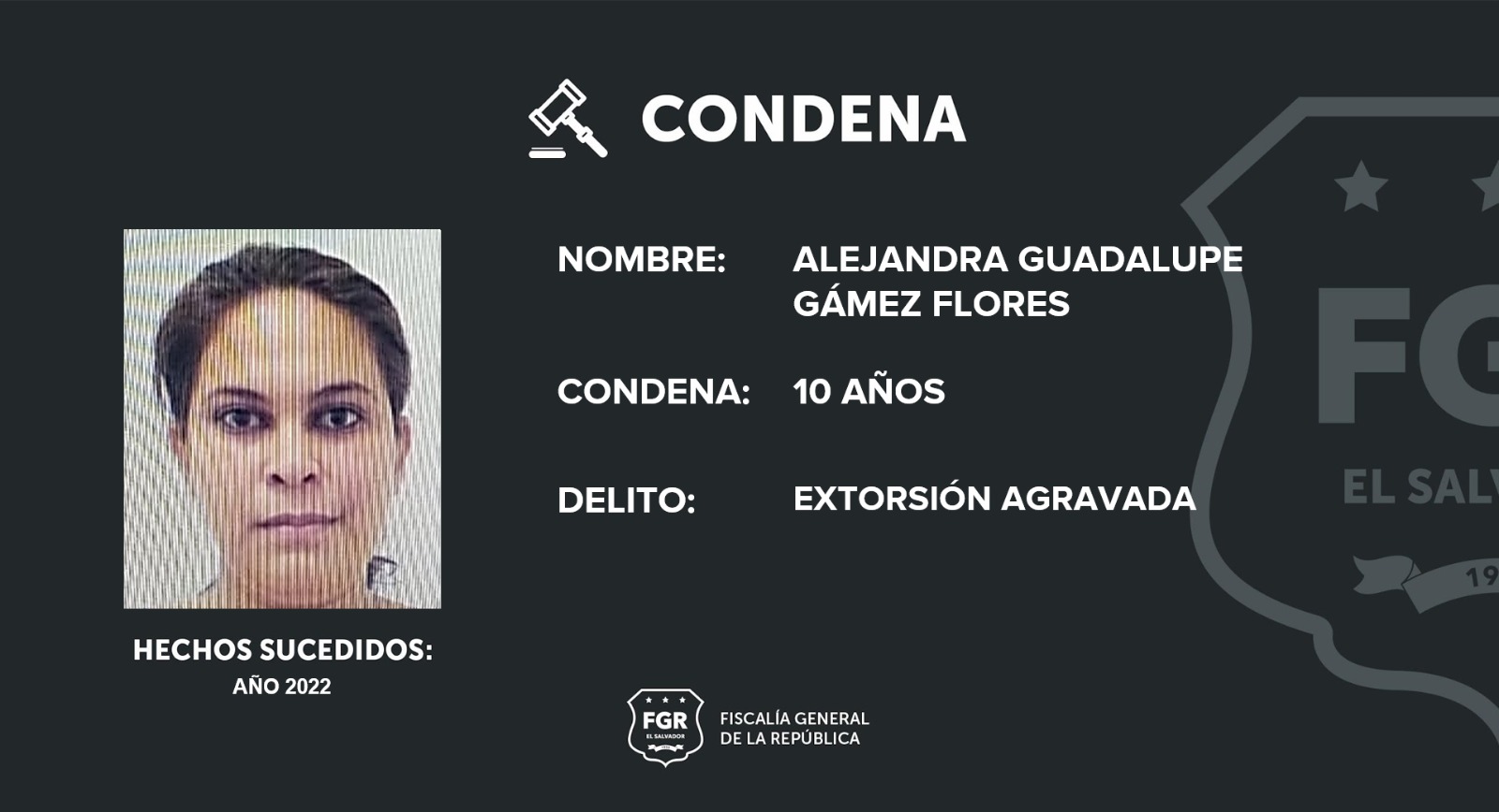 Cojutepeque, Cuscatlán. Luego de varios días de juicio, el ente fiscal hizo posible que Fernando Javier Cruz Hernández y Alejandra Guadalupe Gámez Flores fueran sentenciados a 17 y 10 años de prisión, respectivamente, por el delito de extorsión agravada.