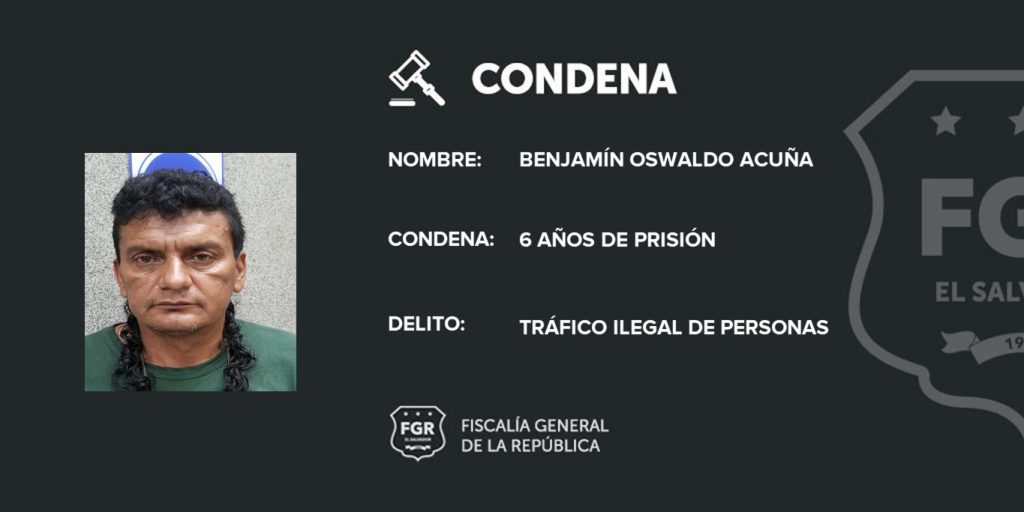 Santa Ana. Fiscales de la Unidad Especializada de Delitos de Tráfico Ilegal y Trata de Personas demostraron que Benjamín Oswaldo Acuña cometió el delito de Tráfico Ilegal de Personas, al servir de guía para sacar del país a dos personas adultas y 3 menores de edad en un punto fronterizo del municipio de Chalchuapa.