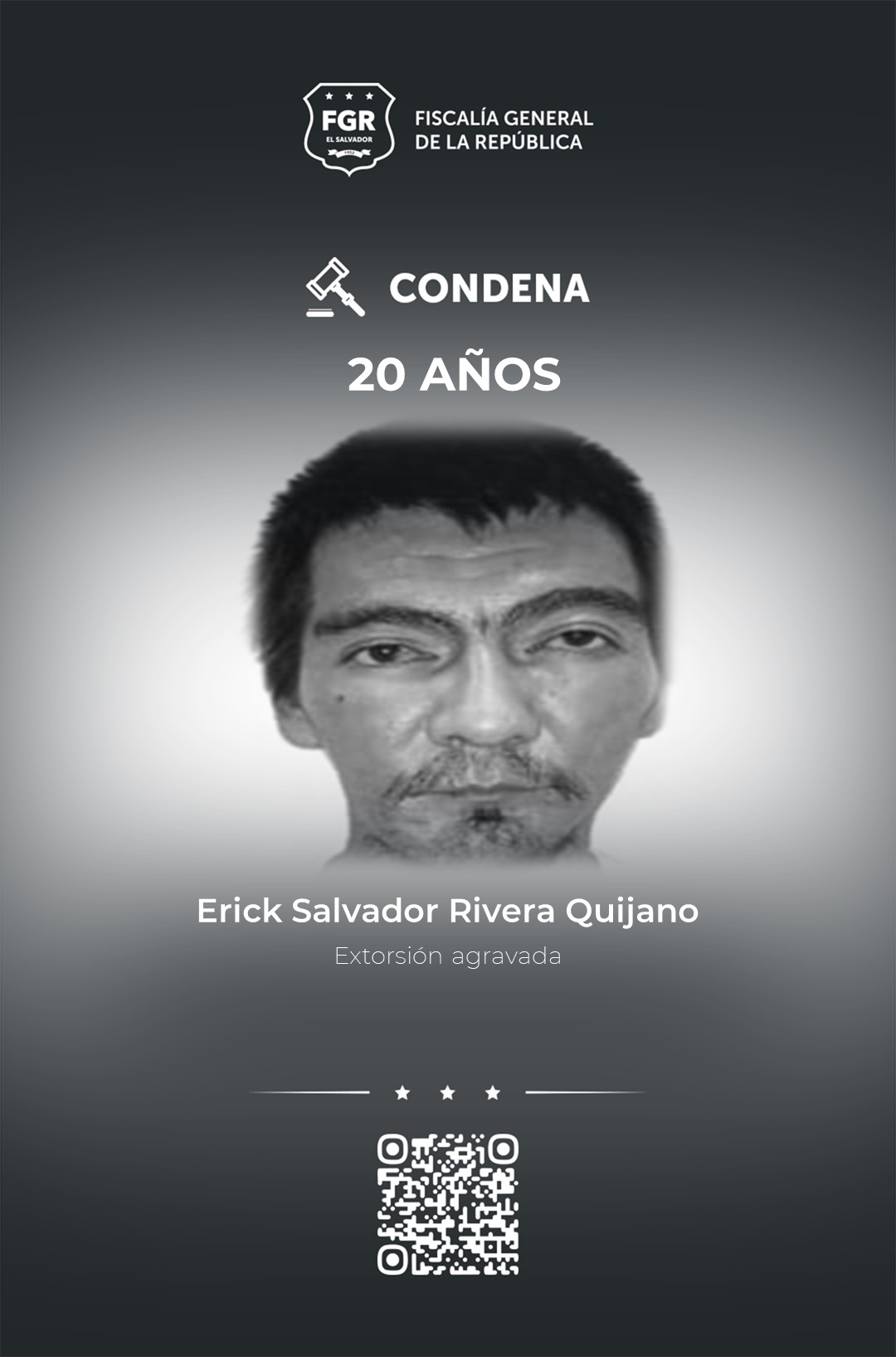 Chalatenango. A 20 años de cárcel fueron condenados Erick Salvador Rivera Quijano, Daniel Rodríguez Amaya y Juan Antonio Franco Sola (ausente), pandilleros de la MS-13, por haber extorsionado a un comerciante de Nueva Concepción Chalatenango, durante los meses de mayo, junio y julio de 2022.