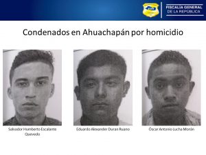 Ahuachapán. Tres pandilleros miembros de una estructura terrorista fueron condenados a 21 años prisión después que un Tribunal los encontrara culpables del delito de Homicidio Agravado en perjuicio de Vicente Antonio Méndez Salinas; hecho ocurrido el 4 de septiembre de 2019 en la ciudad de Ahuachapán.