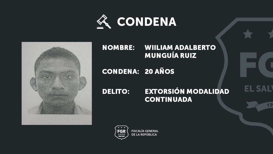 Sonsonate. La Fiscalía General de la República (FGR) logró que Remberto Antonio Cuéllar Chávez, Daniel Antonio Amaya Sandoval y William Adalberto Munguía Ruíz sean condenados a 20 años de cárcel cada uno por haber extorsionado a un pequeño comerciante de Izalco, Sonsonate.