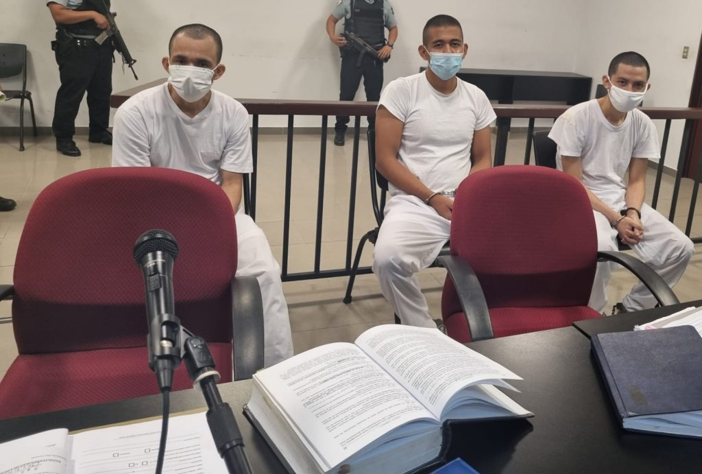 Según la información fiscal, los pandilleros Víctor Manuel Rivera Fuentes, David Ismael Recinos Artiga y Noel Humberto Sánchez Callejas fueron capturados por agentes de la Policía Nacional Civil (PNC) en flagrancia.