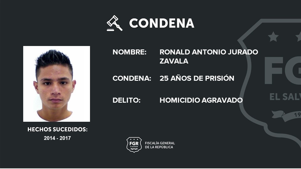 Por los cuatro homicidios, Marvin Alberto Maldonado Arias, alias “gánster o chon”, con nivel de corredor de clica, recibió 100 años de cárcel. En el mismo fallo el homeboy Ronald Antonio Jurado Zavala, alias “el zancudo” fue condenado a 25 años de prisión por un caso de homicidio agravado y a Walter Ernesto González Guardado, alias “el seco” con nivel de paro, se le condenó por agrupaciones ilícitas.