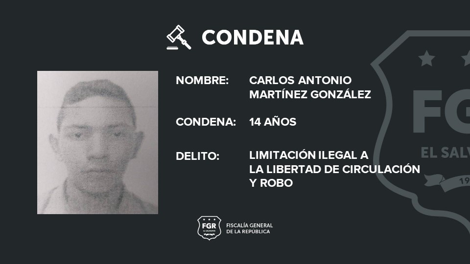 Santa Ana. Una condena de 14 años de cárcel fue impuesta a Carlos Antonio Martínez González por haber limitado la libre circulación a un ciudadano honrado; por este delito también otros dos pandilleros del barrio 18 recibieron sentencia de prisión, Omar Eguizabal Mendoza, Ismael Alberto Guzmán Martínez.