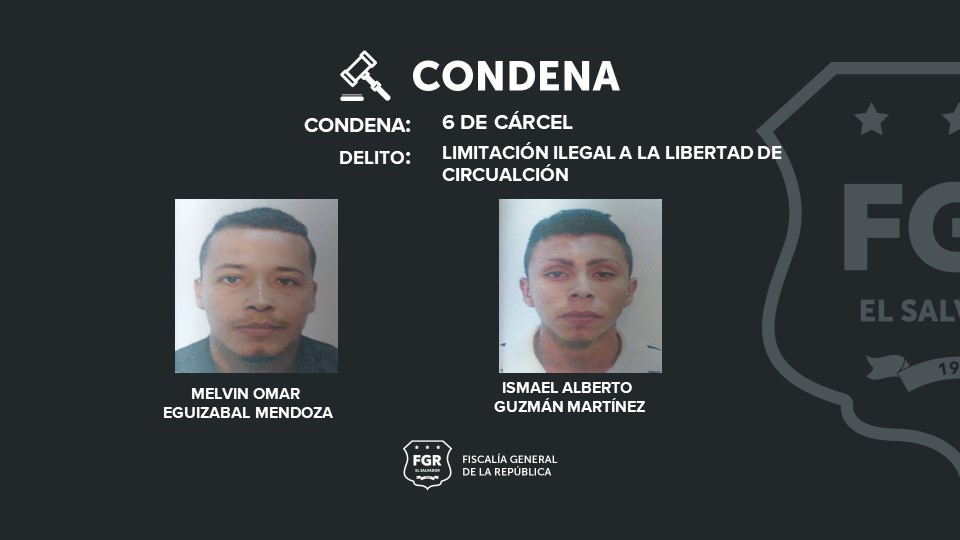 En juicio, la FGR demostró la culpabilidad de los tres sujetos a quienes la Fiscalía les atribuía los delitos de Limitación a la Libertad de Circulación y al pandillero González también se le acredito el delito de Robo y deberá pagar $60 dólares a la víctima en concepto de responsabilidad civil.