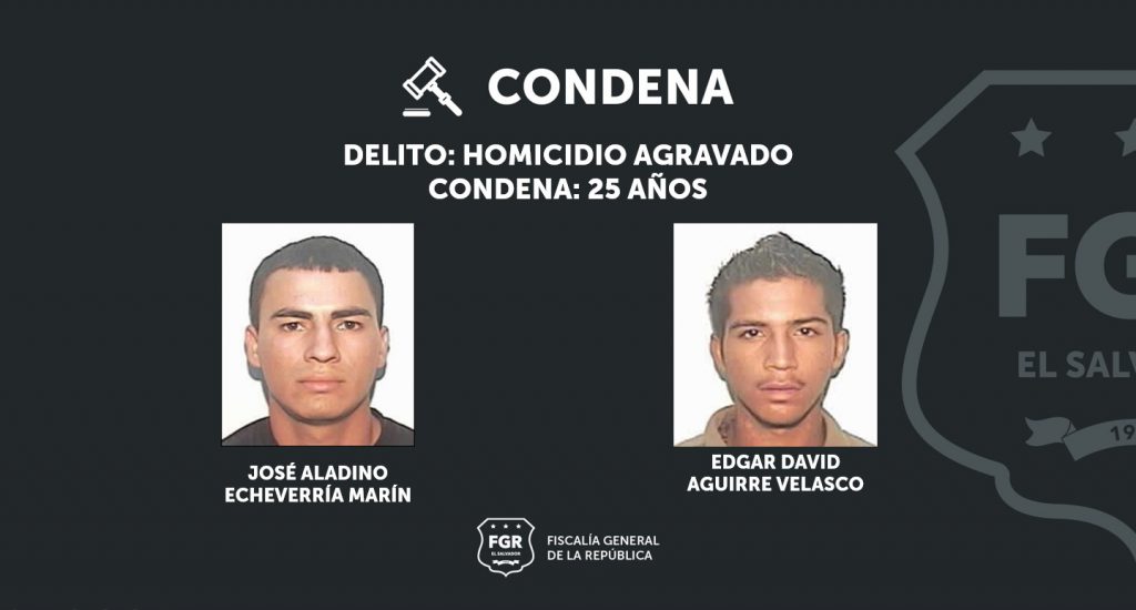 Ilobasco, Cabañas. Tras dos días de juicio, los fiscales lograron demostrar la responsabilidad penal de Edgar David Aguirre, José Aladino Echeverría Marín y Irene Isidro Echeverría Marín por haber asesinado a dos víctimas en Cabañas.