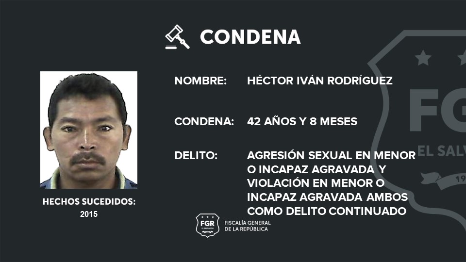 Santa Ana. Héctor Iván Rodríguez fue condenado a 42 años y 8 meses de cárcel por los delitos de agresión sexual y violación ambos en menor e incapaz en modalidad continuada.