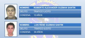 Durante la vista pública celebrada el 18 de marzo 2019, en Tribunal Tercero de Sentencia San Salvador, se condenó a Luis Rene Guzmán Santín, a cuatro años de prisión, por el delito de Posesión y Tenencia, a quien se le incauto 40.60 gramos de Marihuana; mientras que a Roberto Alexander Guzmán Santín, recibió la pena de 10 años de cárcel, por el delito de Tráfico Ilícito, al cual se le incauto 1,918.80 gramos de droga marihuana, $ 1,705, dos balanzas y cuatro vehículos.