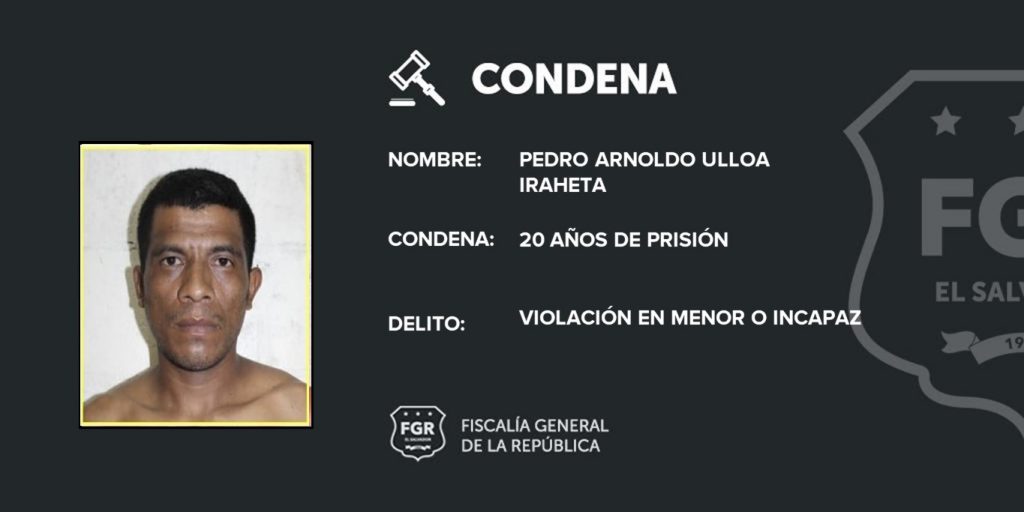 Usulután. Fiscales de la Unidad de Atención Especializada para la Mujer, Niñez y Adolescencia de la oficina de Usulután demostraron que Pedro Arnoldo Ulloa Iraheta de 38 años, violó de forma continuada a un menor de 7 años.