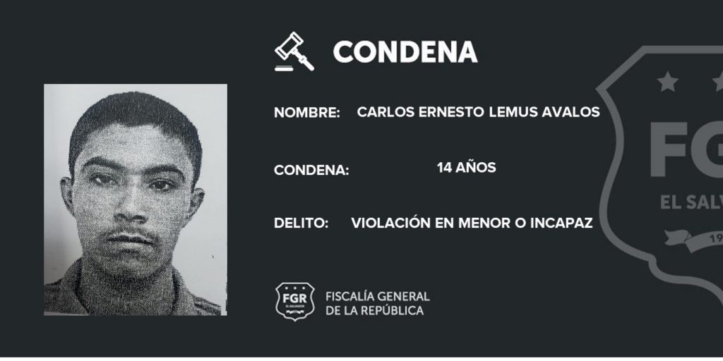 Chalatenango. Carlos Ernesto Lemus Ávalos fue condenado a 14 años de prisión y al pago de dinero en concepto de responsabilidad civil, por haber abusado sexualmente de una menor de 13 años, en diciembre 2020 en Nueva Concepción Chalatenango.