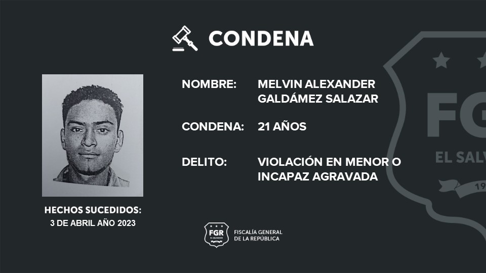 Sonsonate. En juicio, la Fiscalía demostró la culpabilidad de Melvin Alexander Galdámez Salazar, quien con engaños violó a una menor de edad y fue condenado a 21 años de prisión. La agresión fue cometida el tres de abril de este año, en la urbanización Lomas de San Antonio, Sonsonate.