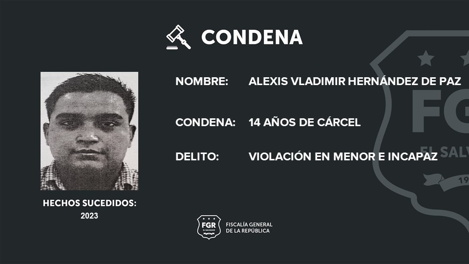 Santa Tecla, La Libertad Sur.  Alexis Vladimir Hernández de Paz fue condenado a prisión por abusar sexualmente de una mujer con discapacidad mental.