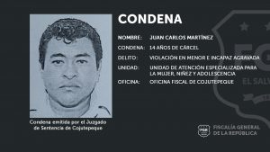 Cojutepeque, Cuscatlán. Fiscales de la Unidad de Atención Especializada para la Mujer, Niñez y Adolescencia de la oficina en Cojutepeque, lograron que Juan Carlos Martínez, de 46 años, fuera condenado a 14 años de cárcel, por el delito de Violación en Menor e Incapaz Agravada.