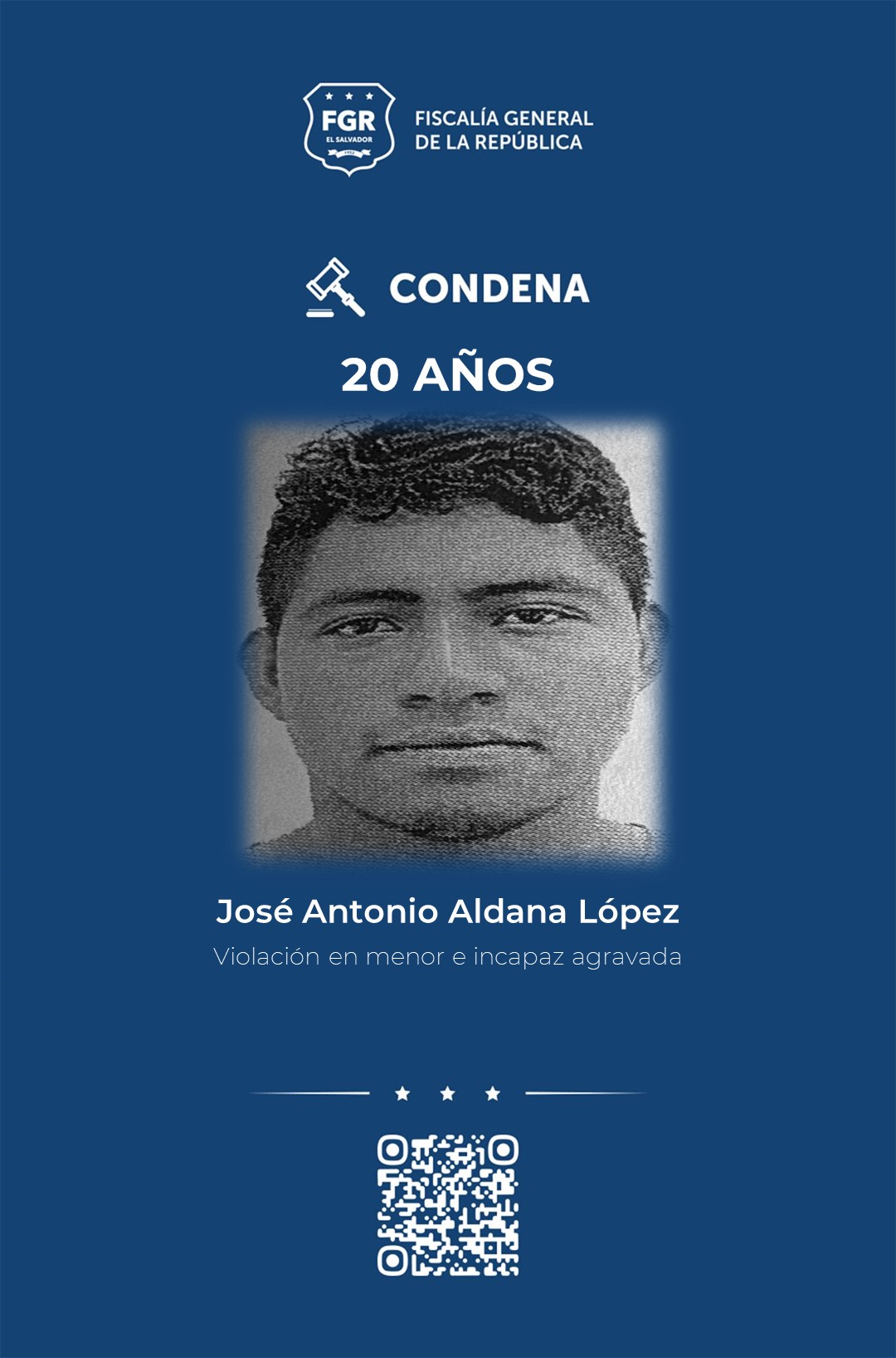 La Libertad Este. A una pena de 20 años de cárcel fue condenado José Antonio Aldana López por haber violado en reiteradas ocasiones a una adolescente, desde que tenía 14 años de edad. Los abusos fueron cometidos, entre los meses de junio a octubre 2024 en la jurisdicción de Santa Tecla, La Libertad Sur.