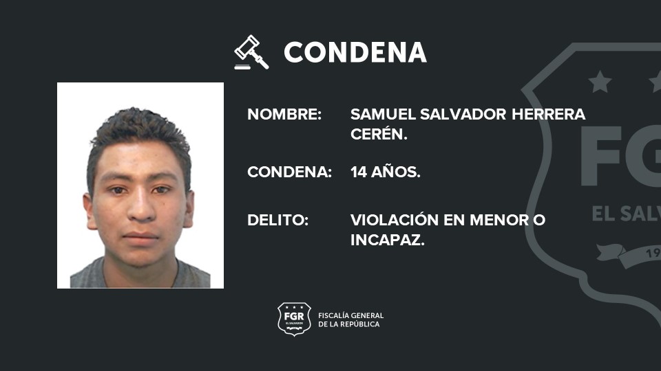 La Unión. Samuel Salvador Herrera Cerén, de 23 años, fue condenado a 14 años de cárcel por violar a una niña de 13 años. La Fiscalía General de la República (FGR) comprobó que Herrera Cerén enamoró a la menor de edad y logró convencerla de involucrarse sentimentalmente con él.
