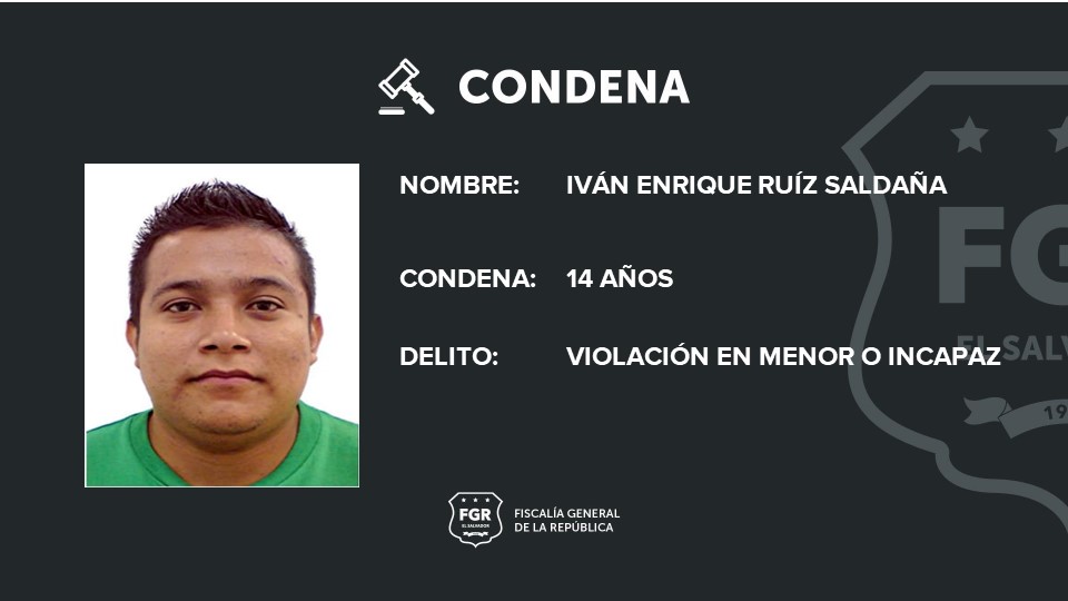 La Fiscalía General de la República recopiló todos los elementos que demostraron la responsabilidad de Ruiz en el cometimiento del delito de Violación en Menor e Incapaz y el Tribunal de Sentencia de Ahuachapán impuso la pena de 14 años de cárcel.