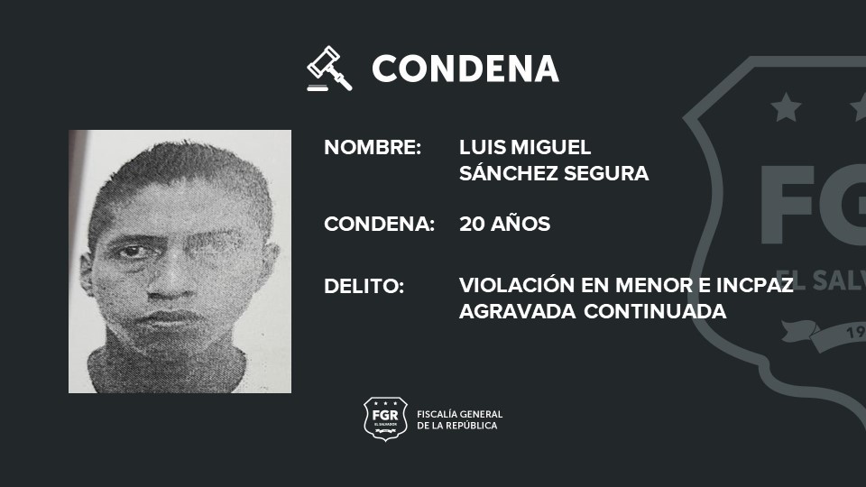 Ahuachapán. A 20 años de cárcel fue sentenciado Luis Miguel Sánchez Segura, quien fue encontrado culpable de haber violado a una menor de edad y tras los abuso, ella resultó embarazada.