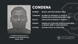 La Libertad. Fiscales de la Oficina de Zaragoza lograron que el Tribunal Primero de Sentencia de Santa Tecla impusiera una condena de 20 años de prisión para Miguel Antonio Bernal Pérez, por el delito de Violación en Menor e Incapaz Agravada