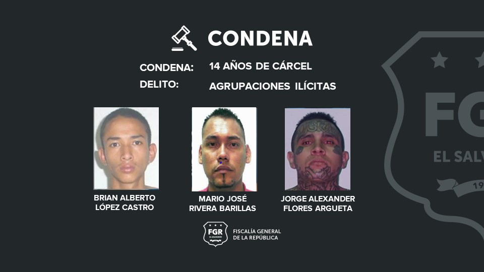 También fueron sentenciados a 14 años de prisión Brian Alberto López Castro, “goloso”; Mario José Rivera Varillas, alias “Chic” y Jorge Alexander Flores Argueta, alias “tamal”.